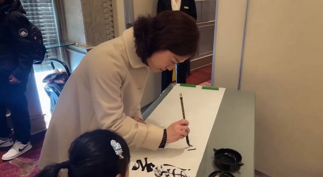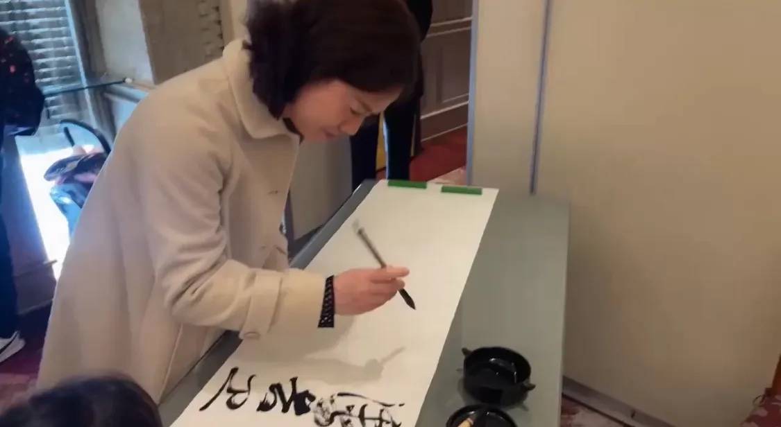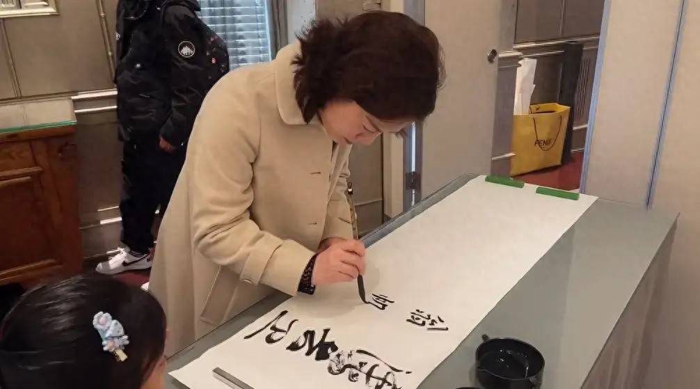 算起来上一次翁帆写毛笔字,还是和杨振宁一起。记得像是杨振宁生日的时候,他拉着翁帆一起写下名字。翁帆还推辞说自己写的不好,杨振宁就陪着她一起写。