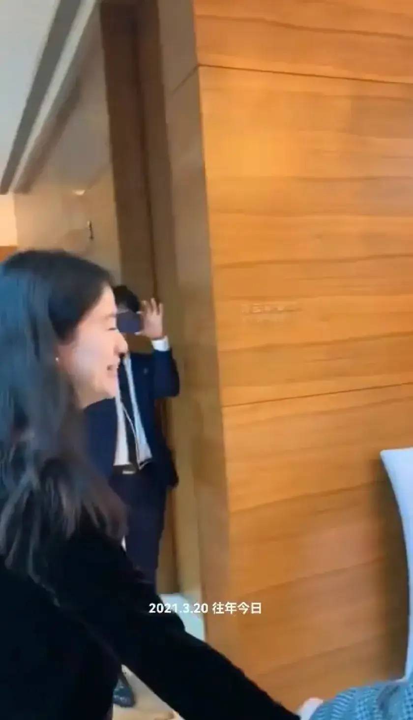 在动图中,很清晰的看到翁帆笑了。她笑起来满脸娇羞、还像个小姑娘一样。